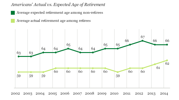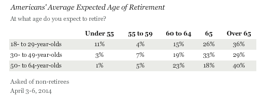Gallup found a noticeable disconnect Millennials have with their planned retirement age and their behavior to achieve that goal. When Gallup asked when they planned to retire, Millennials answered "Under 55" at a rate almost four times higher than Gen Xers.