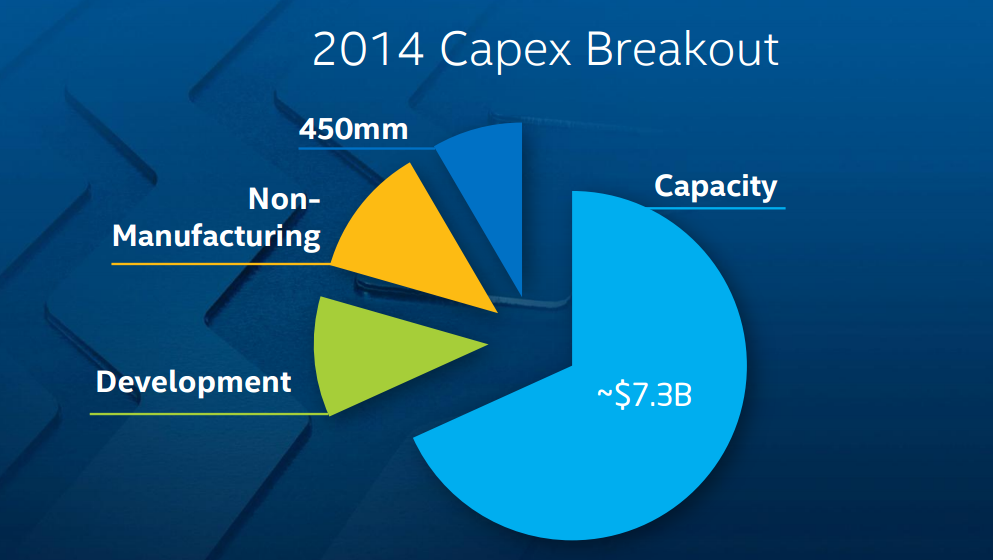 The slide below, which comes from Intel's 2014 investor meeting, shows that most (but not all) of Intel's capital expenditure budget is related to capacity: