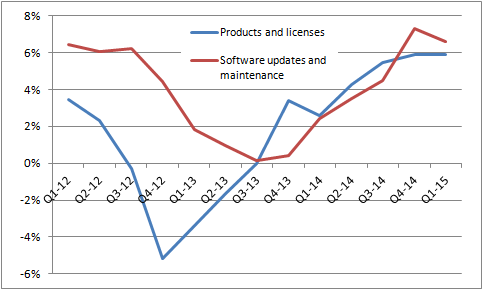 The good news is that, after a period of negative growth in 2012-2013, product and license growth is running in the mid-single digits. Software update revenue tends to follow product and license growth -- therefore, it's reasonable to expect good growth in software update revenue in future quarters. For reference, software blade revenue grew 20.4% in the quarter.
