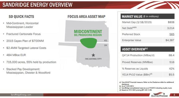 Focus is a good thing, as it can drive a company to be extremely efficient. SandRidge Energy investors have seen this firsthand as the company has uniquely been able to profitably turn the Mississippian Lime formation in the Mid-Continent into a growth driver for the company. By focusing on this play, which is outlined in the map below, the company has been able to overcome technical challenges and use its scale to drive meaningful results.