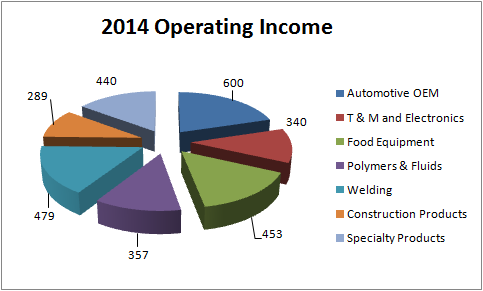 A breakout of 2014 operating income by segment reveals the relative importance of each segment.