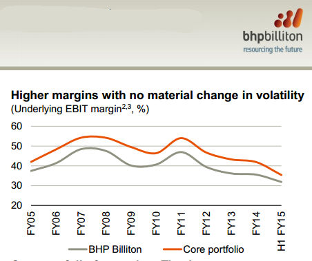 In fact, BHP is so confident the core portfolio's prospects that it plans to maintain the current distribution after the spinoff. A big part of this is because the core portfolio provided roughly 95% of the company's EBIT in fiscal 2014. BHP shareholders, then, should like the idea of this spinoff for BHP. But what about South32?