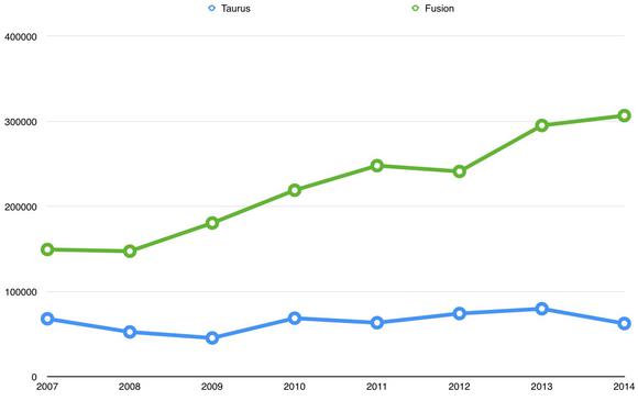 Sales of the full-size Taurus have never come close to those of its midsize Fusion sibling, and they've been flat for years -- while Fusion sales have boomed.