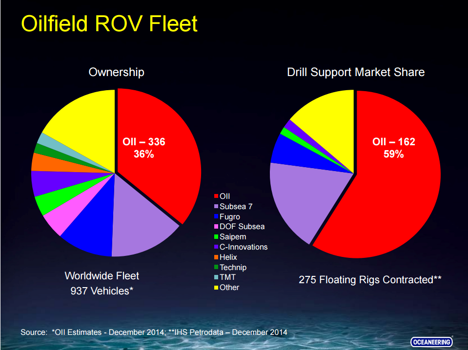 ... and Oceaneering controls close to 60% of the market for contracted remotely operated vehicles used for underwater surveying, installation, and maintenance.