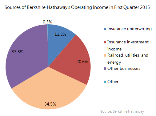 Berkshire gives investors the benefit of breaking out its results by business line. Its railroad, utilities, and energy segments showed the biggest jump in operating income, rising 25% from the first quarter of 2014, to $1.466 billion.