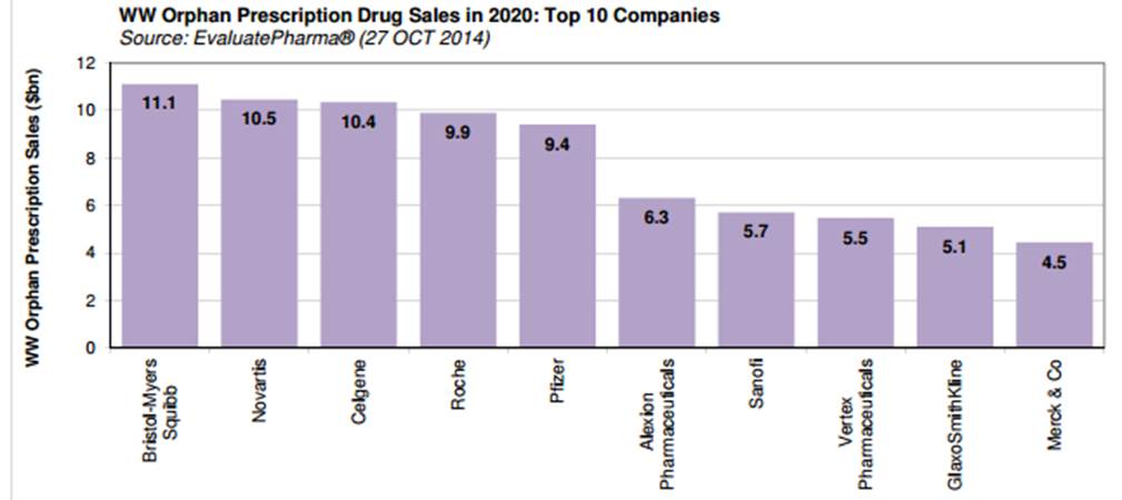By 2020, for example, immuno-oncology drugs are estimated to reach around $35 billion in sales. Orphan drugs, on the other hand, should see sales in the upper stratosphere of $130 billion.
