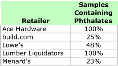 One company that the environmental group praised was Home Depot (HD 1.55%), which was cited for taking in the lead in requiring its suppliers to eliminate orthophthalates in all virgin vinyl flooring by the end of 2015. As of the end of the first quarter, it had already achieved 85% of its goal, according to Ecology Center.