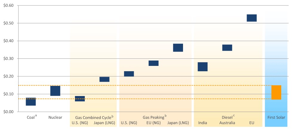 Source: First Solar, Inc . Vertical axis is measured in levelized cost of electricity (LCOE).