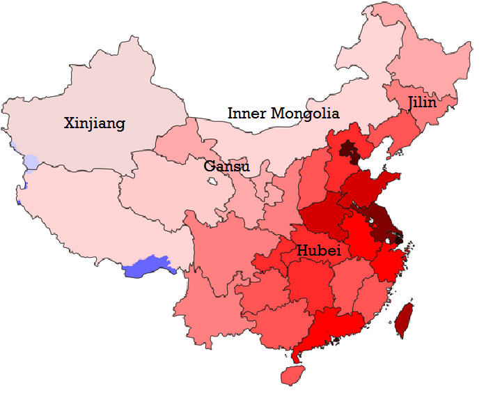 Now compare that map with the next one, showing population density. I've added labels to China's top wind regions, which we'll further evaluate.