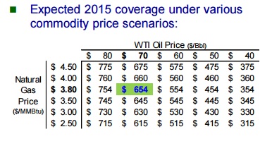 "Now in terms of coverage for the full year, you will recall that our budget for coverage for the full year was $654 million. And that was predicated on a $70-per-barrel oil price, and $3.80 gas ... but at $50 a barrel and $3 in gas, which is pretty close to where we've been running, that our coverage would be about $430 million."