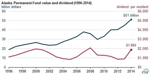 Confronted with that much money, the state of Alaska took a cue from the corporate world and has distributed a cash dividend to its citizens every year since 1982. Since the fund's principle can't be spent, its annual dividend has ranged from a few hundred dollars to more than $2,000. But while 2014's distribution clocked in at a sizable $1,884 per person, the days of steady growth and increasingly large dividends may be coming to a close.