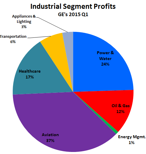 The good news is that GE's focus on industrial businesses is beginning to pay off. In the first quarter of 2015, GE's industrial segment profit was up 9%, with five of seven business segments increasing in earnings. In addition to strong results across most of its divisions, another reason for the quarter's success was GE's ability to cut costs while creating synergies between many of its business products and segments, which is evidenced by GE's improved industrial margins. GE's industrial gross margins and operating margins grew 90 basis points and 120 basis points to 26.2% and 14.6%, respectively, in the first quarter compared to last year.