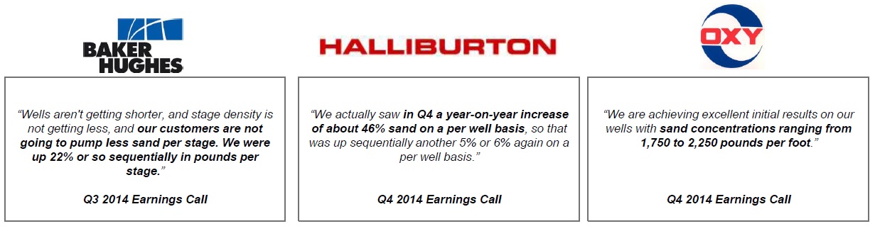 In fact, as this image from fellow frac sand producer Hi-Crush Partners shows, even during the oil crash frac sand usage per well has been on the upswing.