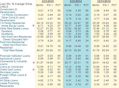 Notice that PNC carries more than twice as many home equity loans as its peers. In addition, it carries significantly more commercial and industrial loans, and more than five times the peer group in credit card balances.