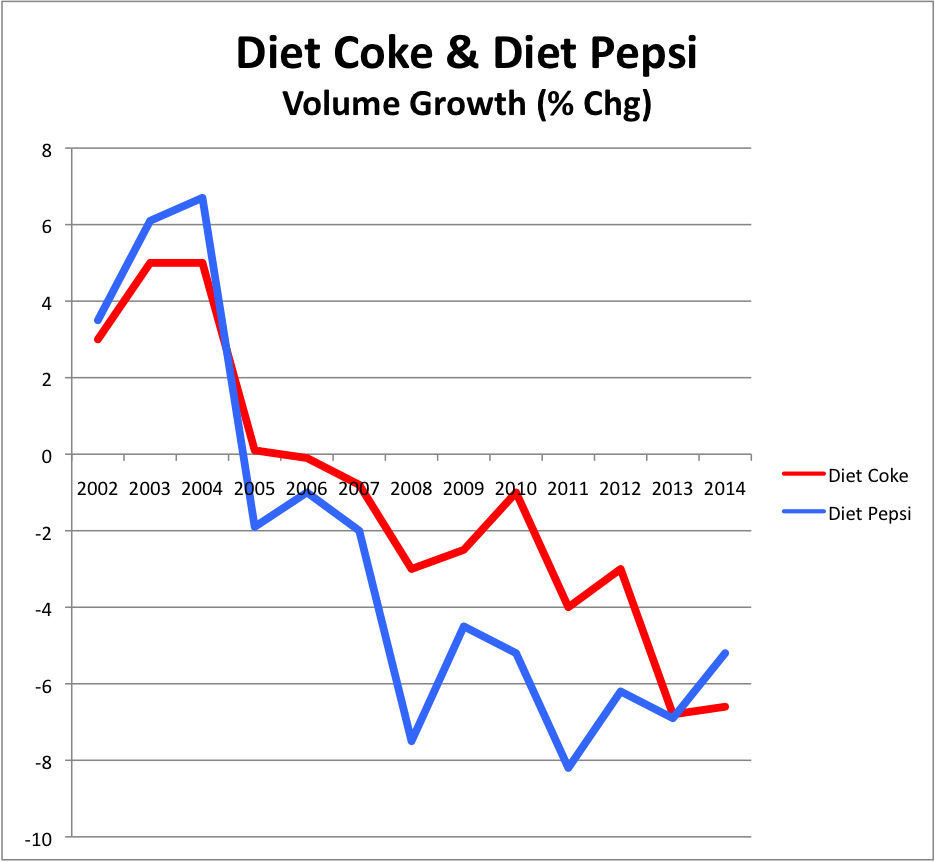 Soda consumption is falling on a global scale, but even more so here at home. Coca-Cola's (KO 0.18%) revenue rose 1.2% this past quarter not because it was selling more soda, but because it raised prices on its beverages. Industry analysts at Beverage Digest said the U.S. carbonated soft-drink market actually contracted again last year, with sales volume falling by almost 1%: the industry's 10th consecutive annual decline.