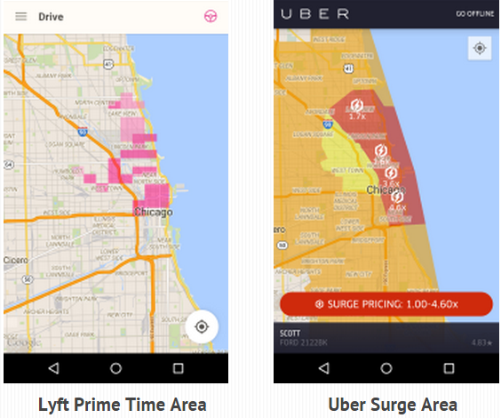 There are many areas of business that Lyft and Uber will be competing intensely over, but the following two will have an interesting impact: high-demand pricing and carpooling. Let's dig into the differences, and for more details, here's a great article comparing Lyft's Heat Map pricing and Uber's Surge pricing, by Scott Van Maldegiam, a driver for Lyft.