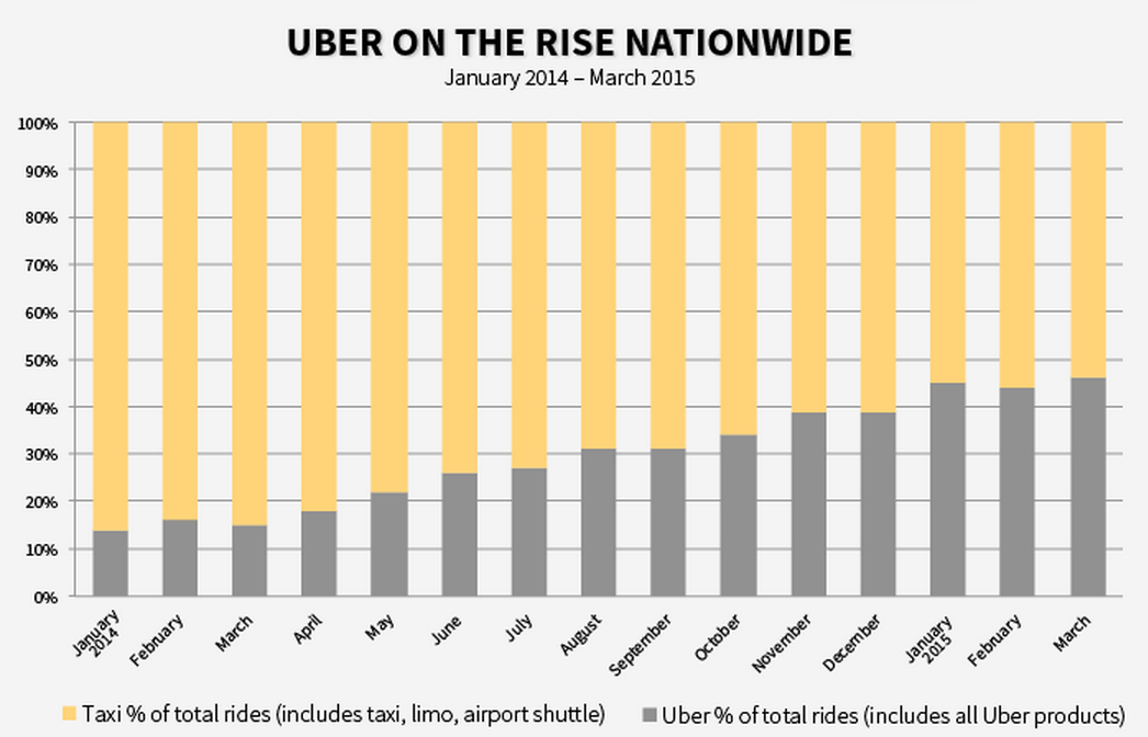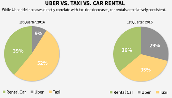 When you break it down further, the taxicab business is taking most of the hit from Uber's market-share grab.