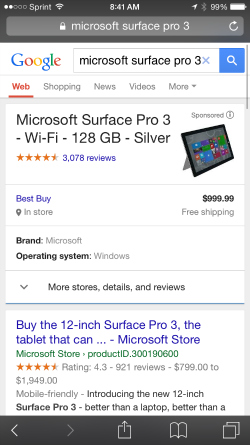 One key idea here is that search results for products on mobile devices are less effective, because customers might find the item they want be unwilling to enter payment information on a phone or tablet. This could (and probably does) drive them to Amazon or another retailer where they already have an account with payment information attached.