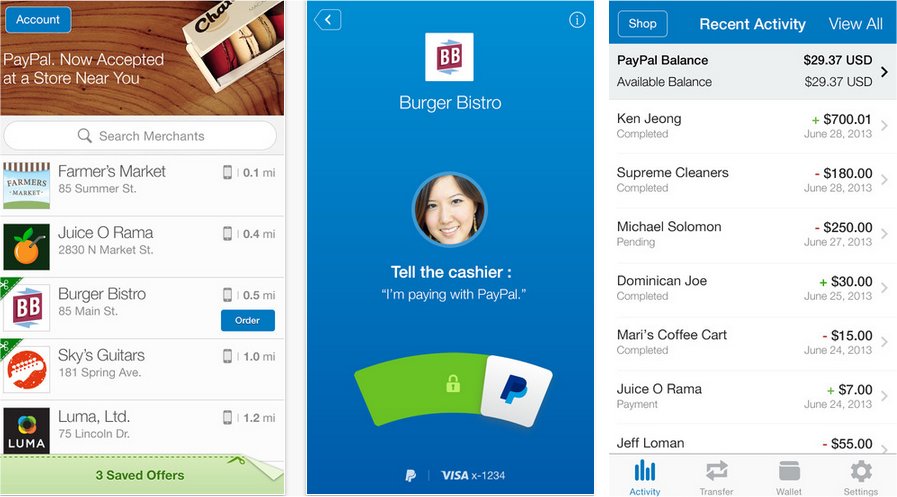 For mobile users, PayPal offers a wide array of payment options. Debit cards, credit cards, and loyalty reward points can all be stored within the app across multiple devices. Popular start-ups including Uber and Airbnb also use PayPal to process in-app payments.