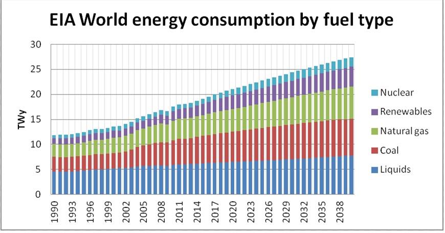 As this chart shows oil and gas will retain a dominant role in the world energy mix for several more decades. In fact ExxonMobil expects oil and gas to provide about 60% of world energy in 2040.