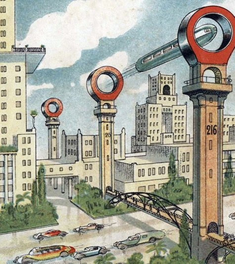 An artist's futuristic rendering of transportation drawn in 1912 has eerie similarities to the proposed hyperloop.