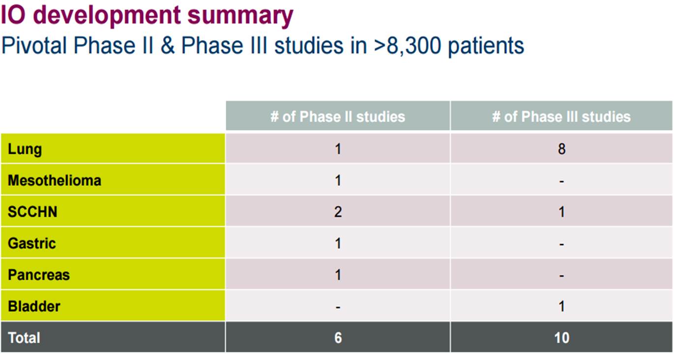 In its extensive clinical update at the recent American Society of Clinical Oncology, or ASCO, meeting, the biopharma shows that its aggressive approach to immuno-oncology is paying off in a big way. Specifically, Astra is commencing 16 mid- and late-stage trials across a diversity of cancer types, lines of therapy, single agents, and a wide swatch of combination treatments. That's a big step given that Astra was just beginning its preclinical and early stage work in immuno-therapy last year.