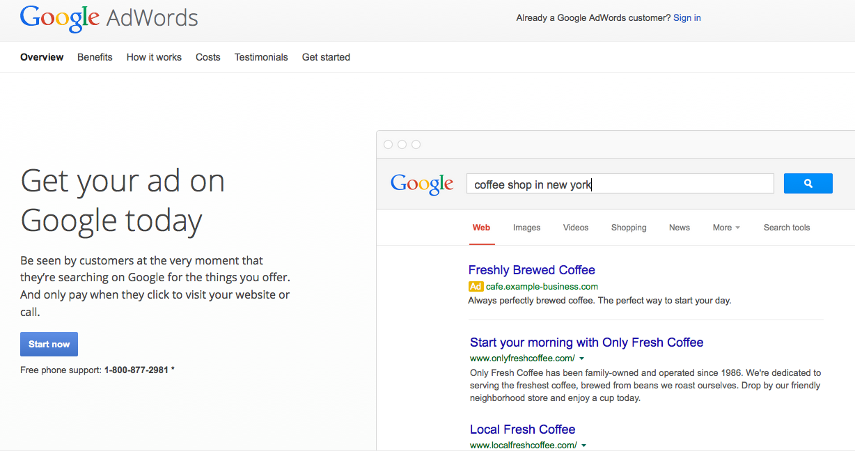 Google's AdWords makes it so anyone and any company can advertise on search results. Source: Google