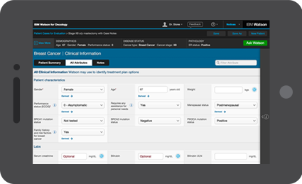 IBM's cognitive computing technology is already in use at Memorial Sloan Kettering Cancer Center. Watson pores through vast quantities of information, including patient data, scientific journals, and medical meetings. Memorial Sloan Kettering clinical experts have been training Watson to make sense of all of this information, with a special focus on breast and lung cancers. Over time, Watson should become increasingly more effective at helping physicians determine the most effective evidence-based treatment options for patients.