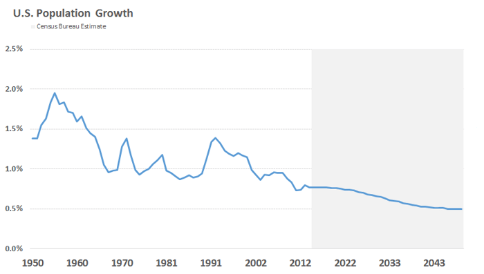 That's not the case anymore. Population growth is less than half today what it was in the 1950s. And it's projected to get even worse: