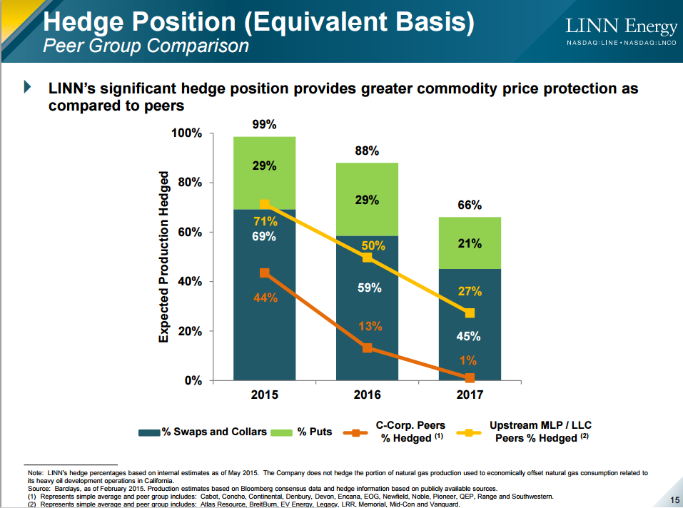 Historially, Linn has used futures contracts and other derivative instruments to lock in prices for its oil and gas production several years in advance to ensure a certain level of certainty when it comes to budgeting for those hefty payouts to shareholders, but when the commodity cycle hits a low, it doesn't make as much sense to take out those types of contracts.