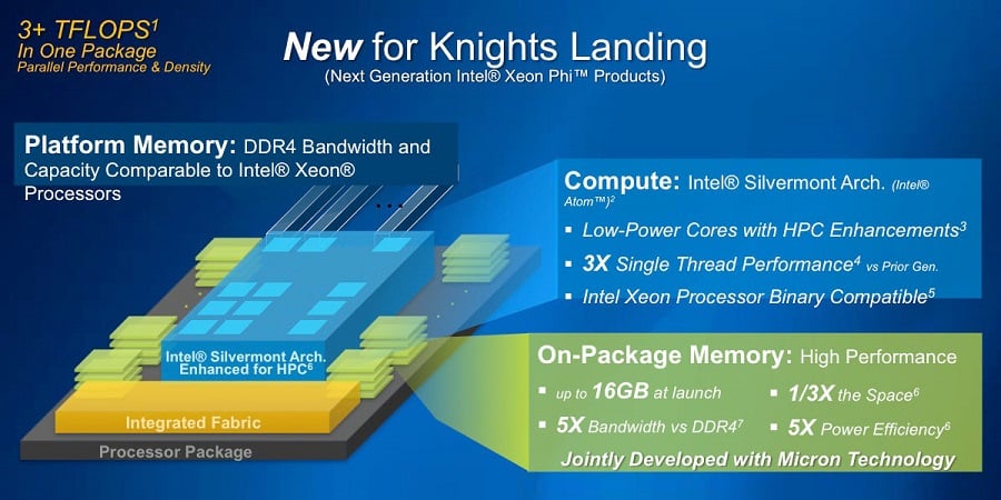 About a year ago, the first details of Intel's (NASDAQ: INTC) upcoming high-performance computing, or HPC, oriented processor known as Knights Landing started hitting the Web. The chip, which promises the capacity to compute over 3 trillion double precision floating point operations per second, is expected to integrate very fast "on-package" memory.