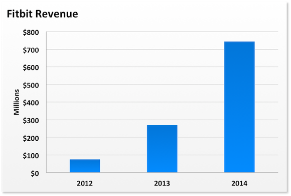 Last week, Fitbit (FIT +0.00%) soared out of the gate after completing one of the most anticipated IPOs of the year. Shares were expected to price at $17 to $19, but the offer ended up priced at $20 per share. By the end of the week, shares closed at $32.50. Perusing the prospectus and looking at the company's financial performance over the past few years is enough to get any investor drooling. Just look at how the company's revenue has skyrocketed to over $745 million in the past few years.