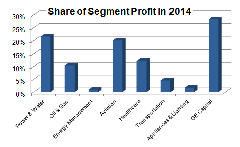 Looking ahead, General Electric plans to generate at least 90% of its profits from its industrial businesses by 2018, and is shifting toward a strategic focus on its core strengths. As you can see in the following chart, the oil-and-gas and healthcare businesses are far larger contributors now.