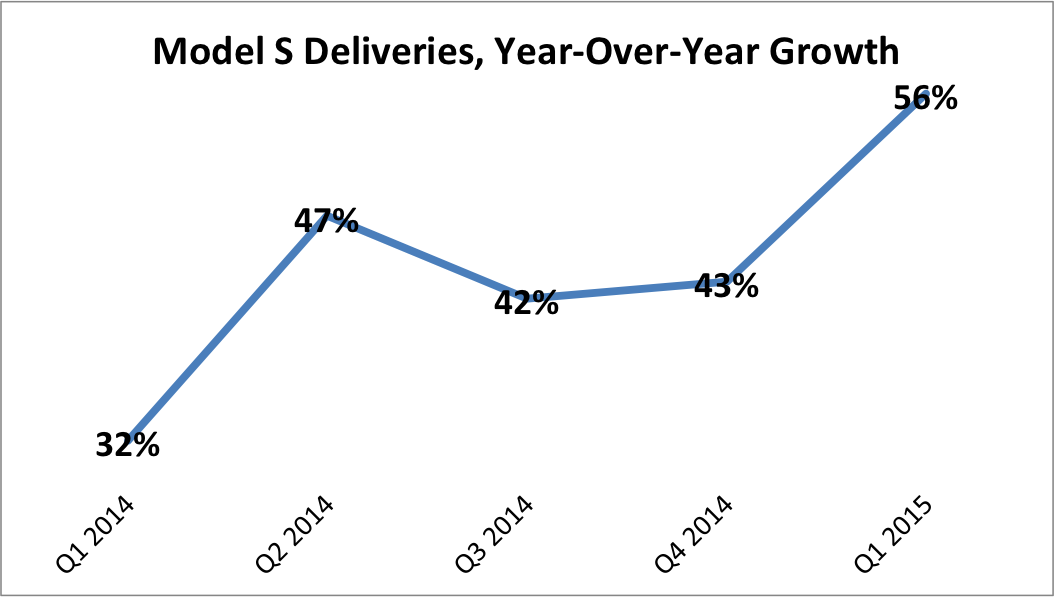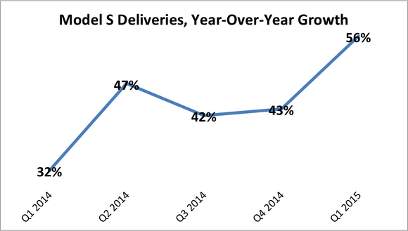 So how is the market for long-range EVs looking? Despite the Model S' now $75,000-plus price tag, sales are soaring, up 56% in Tesla's most recent quarter. This is not just an isolated moment of growth: The company believes it will achieve this same growth rate for the full year.The bullish demand story for long-range EVs has been consistent since the Model S first went on sale in 2012.