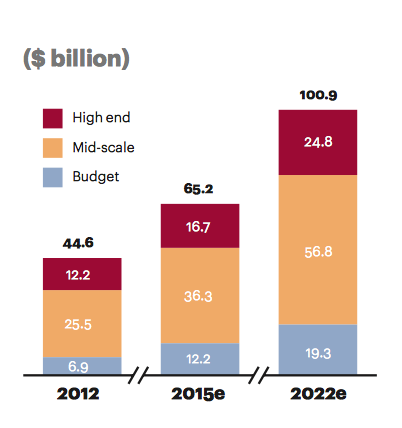 According to an A.T. Kearney report, the mid-market hotel industry in China could grow another 56% between 2015 and 2022.