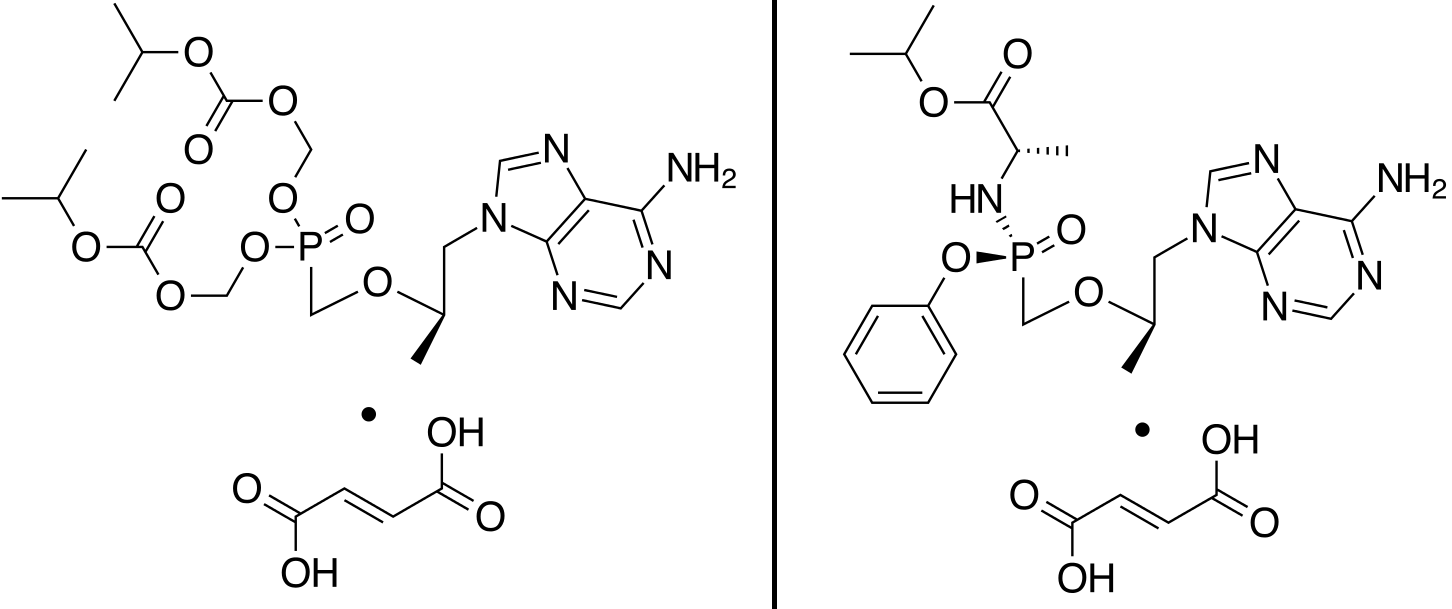 TDF (left) and TAF (right) have similar structures, but TAF requires a dose less than one-tenth of TDF. Source: Vaccinationist via Wikimedia Commons.