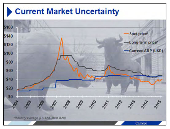 The interesting thing is that uranium hasn't been the best market lately. In fact, uranium prices peaked in around 2007, and despite a quick bounce in 2011, have basically been trending lower since. One of the big problems recently is image.