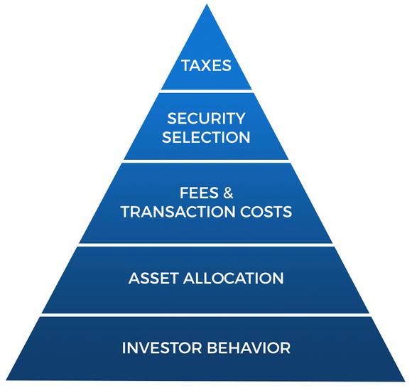Here's a pyramid I made to show what I mean. The most important investing topic is at the bottom. Each topic has to be mastered before the one above it matters:
