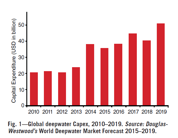 Energy research firm Douglas Westwood forecasts deepwater spending to total $210 billion between 2015 and 2019 -- the highest between any five-year period.