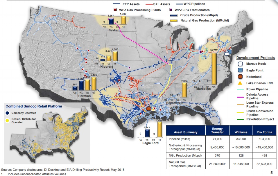 As this map shows, most of Energy Transfer's existing pipelines are concentrated in the South and Midwest, while Williams has a strong presence in the West, South, and North East. Analysts expect the relatively small amount of overlap between the two company's existing pipeline systems would help it gain regulatory approval.