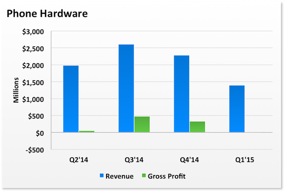 Here are the financial results that the phone hardware business put up during the four quarters reported since the deal closed.