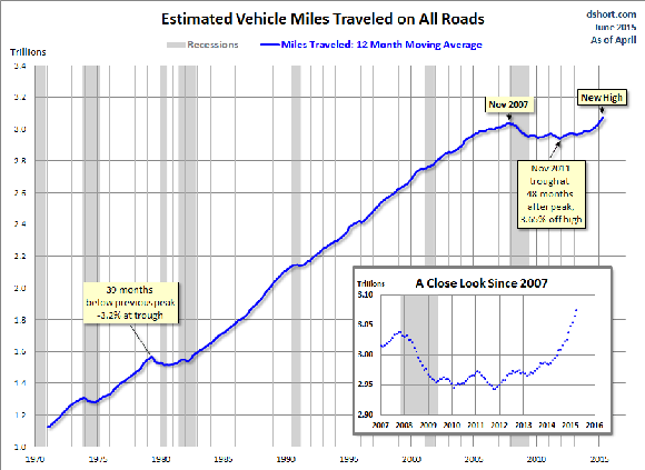 Americans drive fewer total miles today than we did nine years ago, and fewer per person than we did at the end of Bill Clinton's first term. The unique combination of conditions that fueled the Driving Boom -- from cheap gas prices to the rapid expansion of the workforce during the Baby Boom generation -- no longer exists. Meanwhile, a new generation -- the Millennials -- sees a new American Dream that is less dependent on driving.