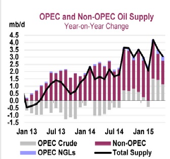 However, now record production from several key OPEC countries -- especially Iraq, Saudi Arabia, and the UAE -- has caused recent supply growth to far outpace demand increases. Furthermore, the IEA expects crude demand growth to further slow during the second half of 2015 because of weaker projected economic growth in developed countries.