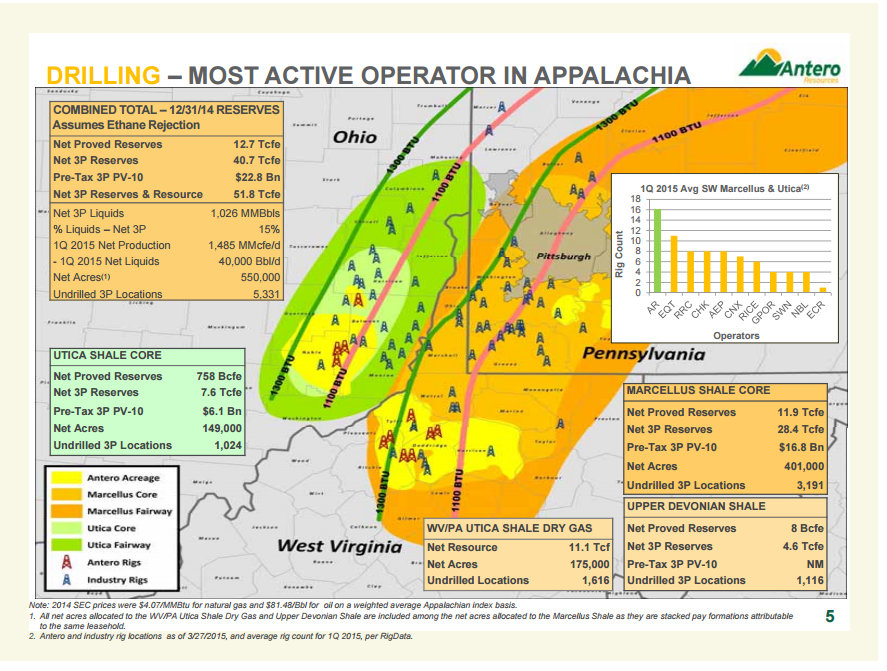 Like its two rivals, Antero Resources also has a very strong acreage position in the core sections of both the Marcellus and Utica Shale plays as the following slide shows.