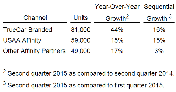 Here's a look at TrueCar's second-quarter growth by channel.