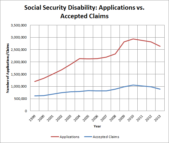 Since 1999 the number of applications for SSDI has more than doubled. But so, too, has the percentage of claims that are denied.