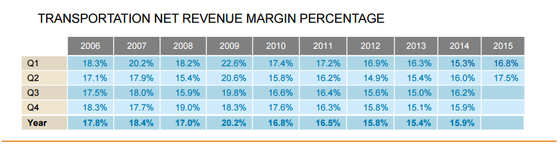 Following is a table of recent trends in transportation net revenue margin the company released today alongside its earnings report: