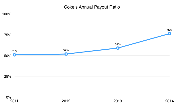 Coke's dividend as a percentage of net income. Source: Company financial filings.