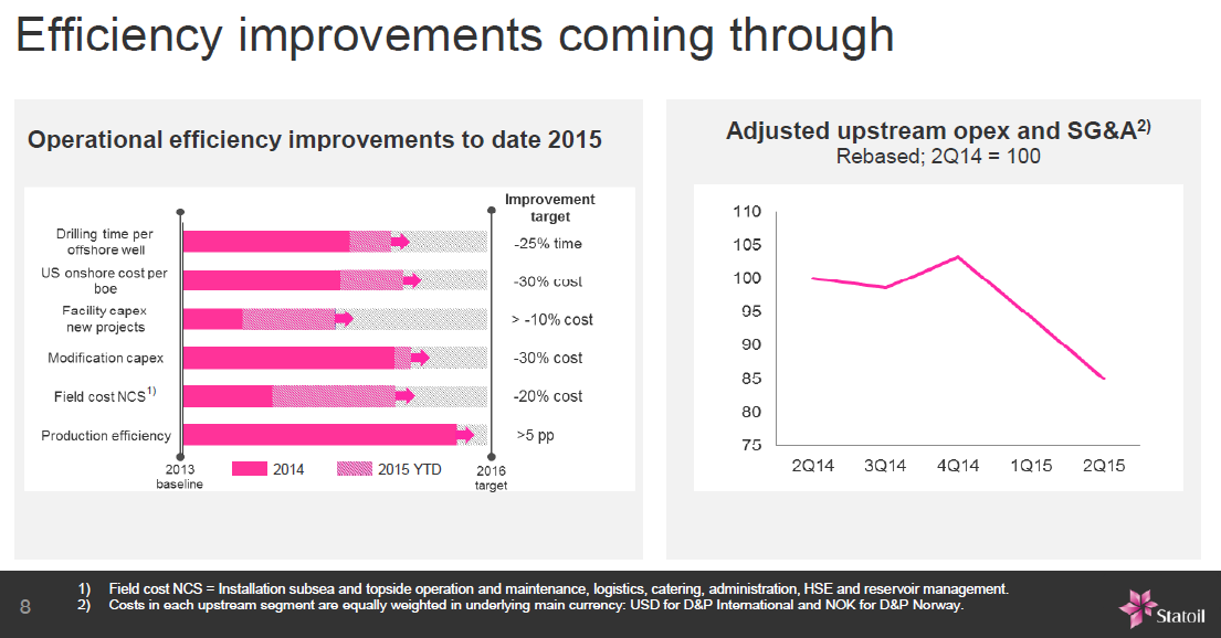 Overall, in the quarter, Statoil managed to increase its operational and financial efficiency by increasing production and cutting down on investments.