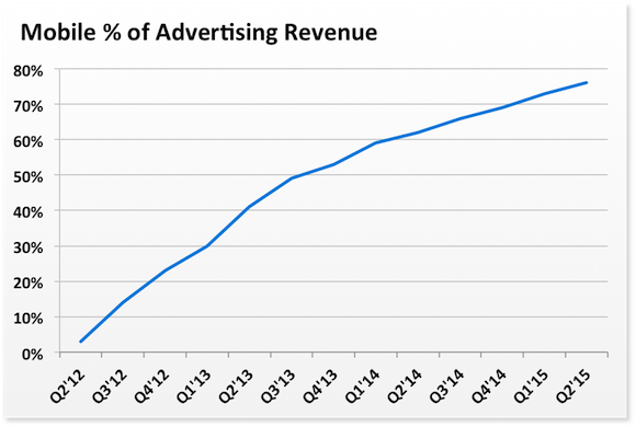 Over the course of just 3 years, mobile advertising has risen from just 3% of advertising revenue to an overwhelming 76% of advertising revenue. That's incredible progress transforming what was once a prominent risk factor into the driving force of the business.